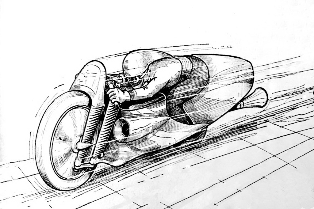 Inspired by Brooklands circa 1913: “The racing sidecar becomes more an object of interest every day: our artist who attended the last Brooklands meeting has put on paper his impressions of existing conditions, and ideas of possible future developments in racing sidecar design.”