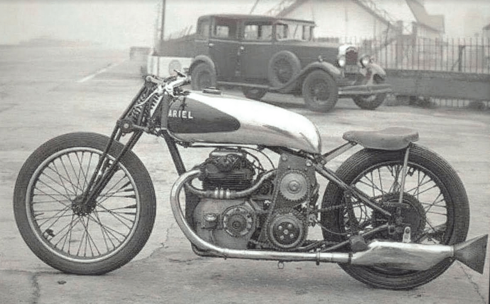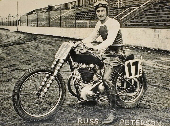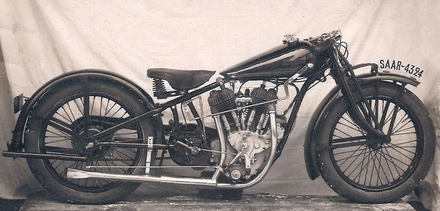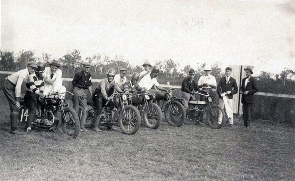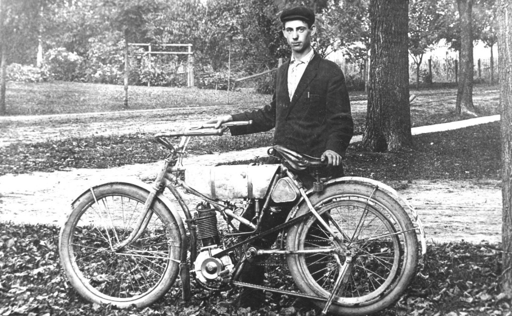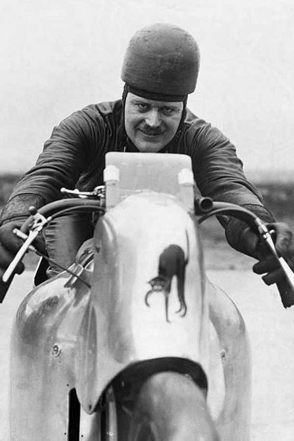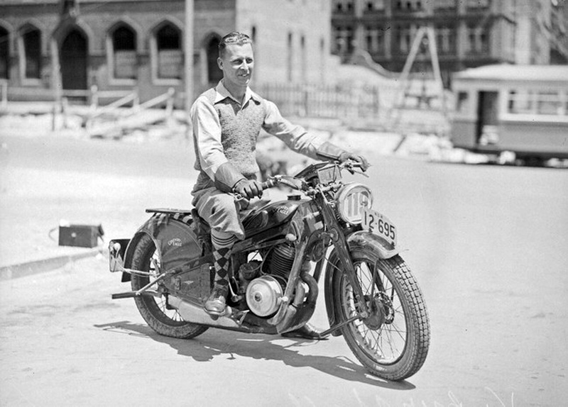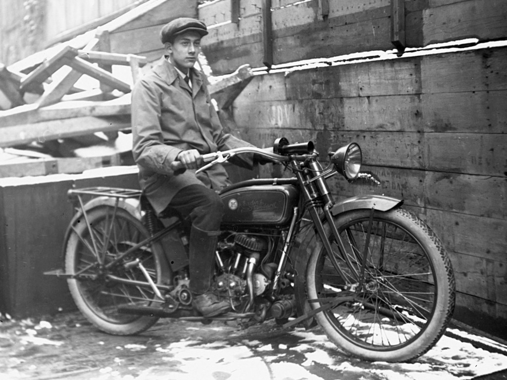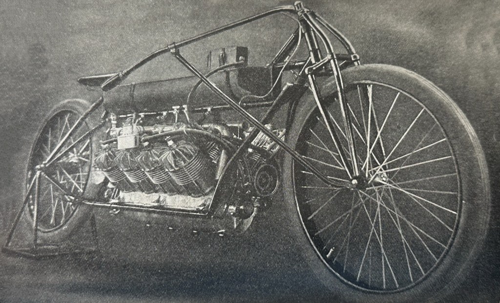 Swedish race ace and designer Helmer Petterson aboard ‘Big Bertha’, his converted ‘Big X’ Excelsior. Helmer spent the 1920s working for at the Schwinn factory in the US, rising to become an engine tuner for the Excelsior dirt track team.