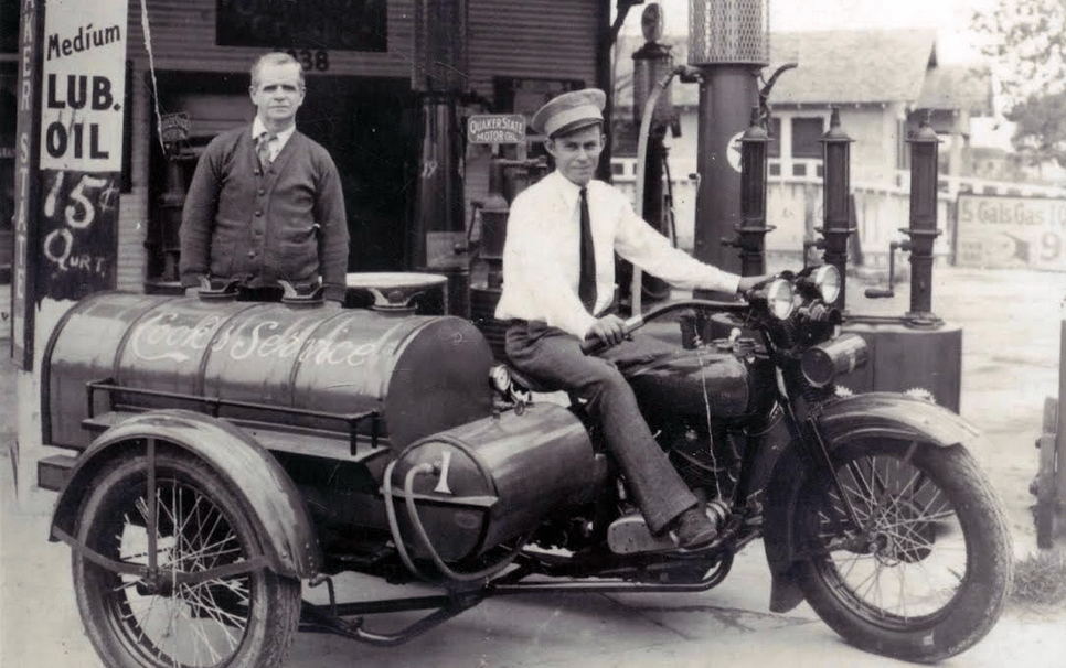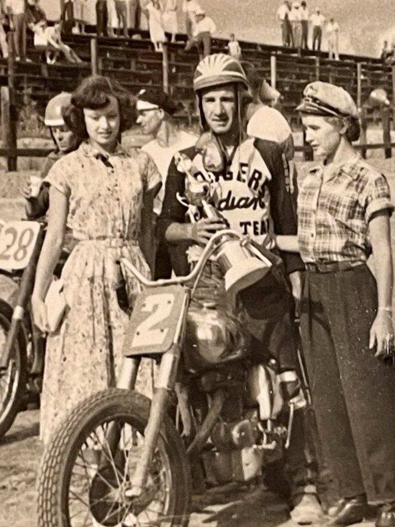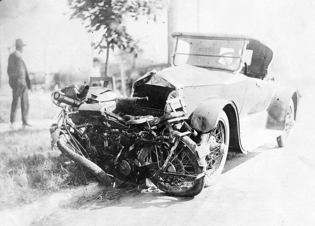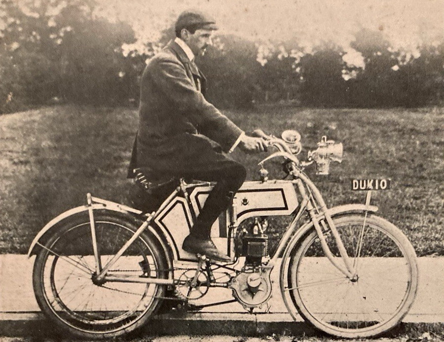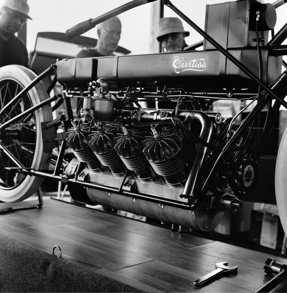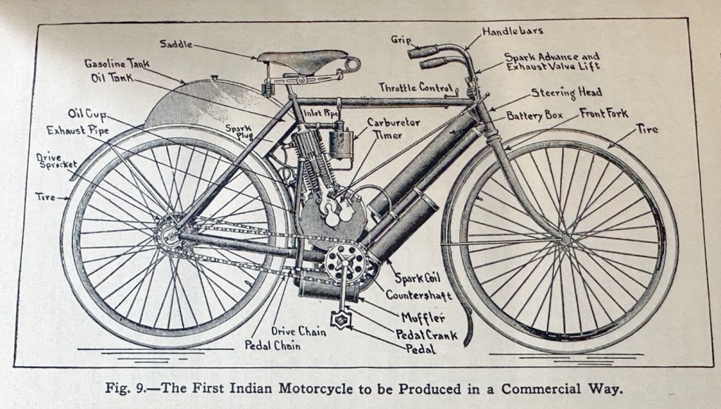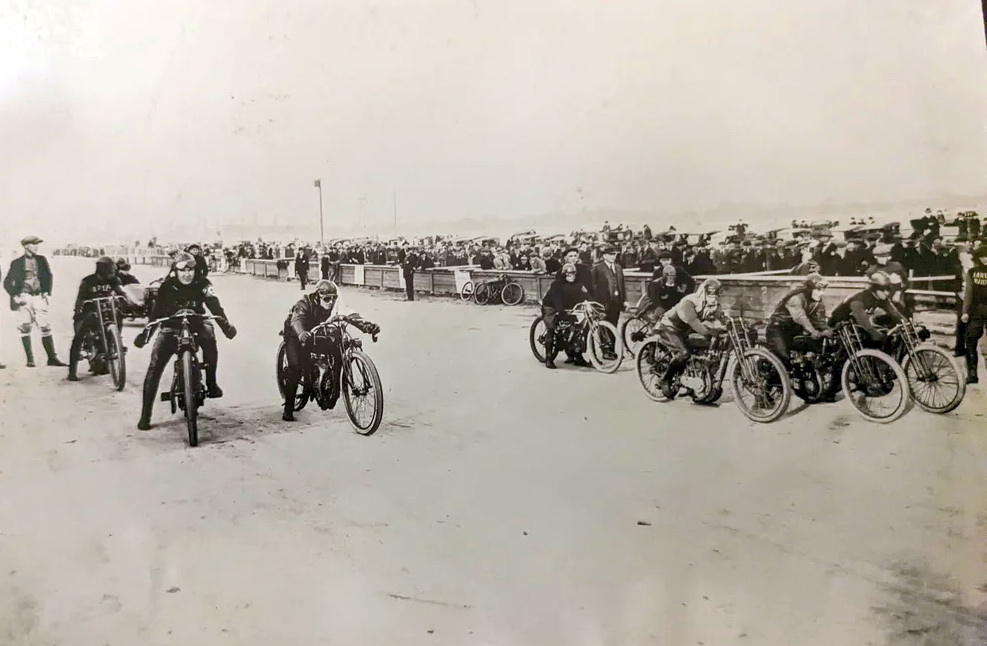 Swedish race ace and designer Helmer Petterson aboard ‘Big Bertha’, his converted ‘Big X’ Excelsior. Helmer spent the 1920s working for at the Schwinn factory in the US, rising to become an engine tuner for the Excelsior dirt track team.