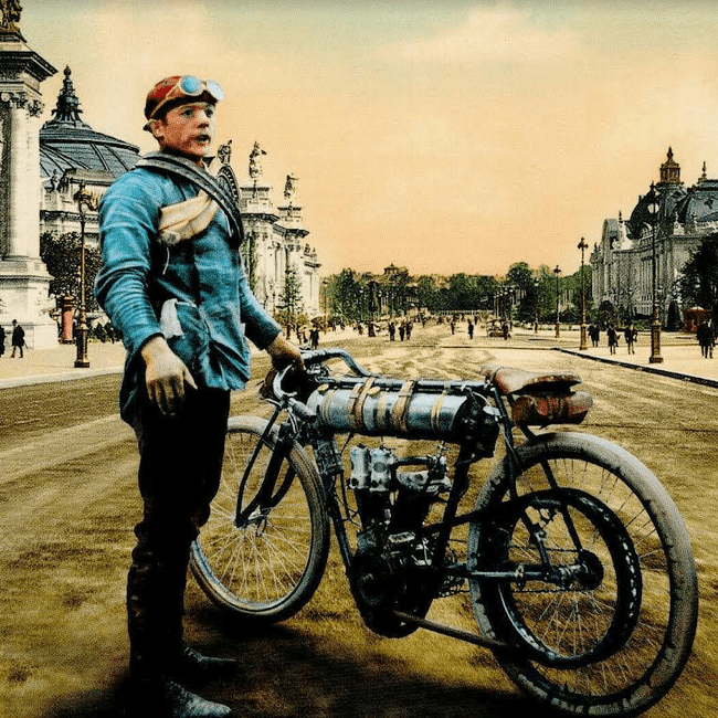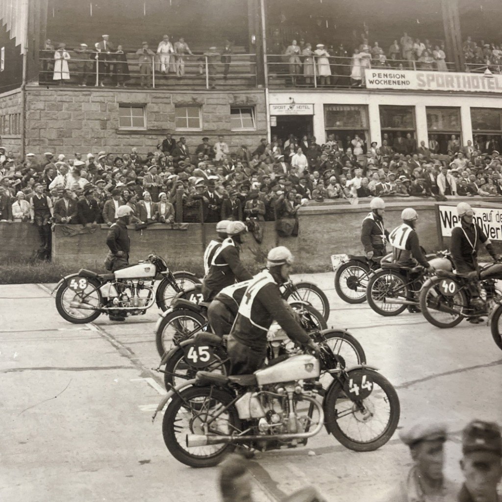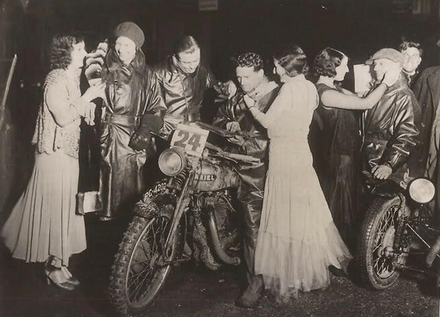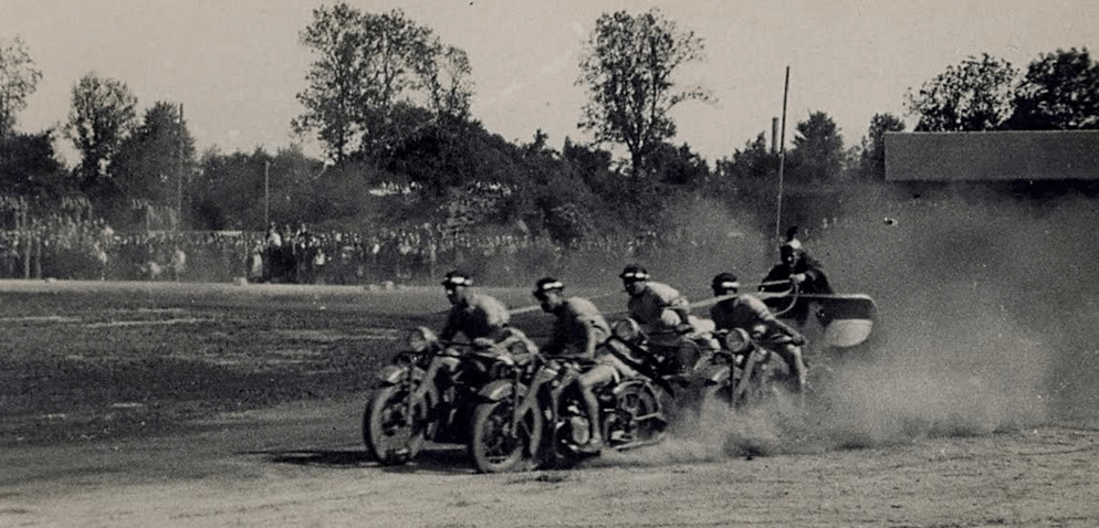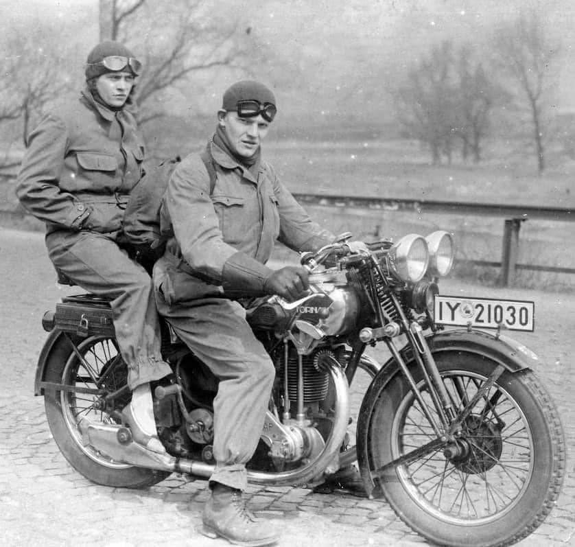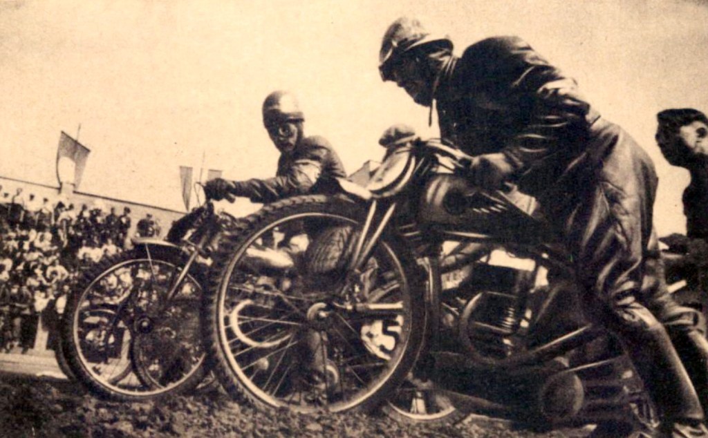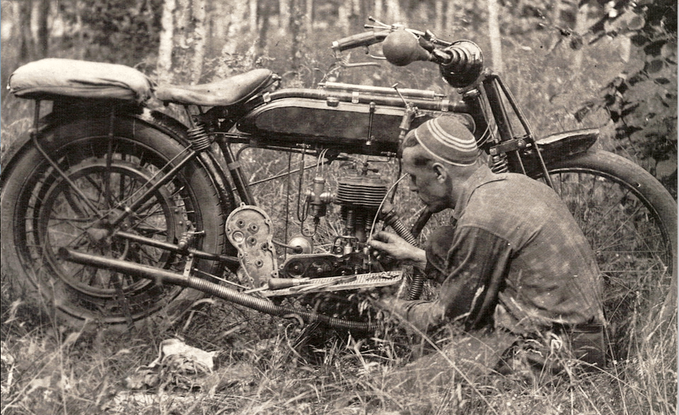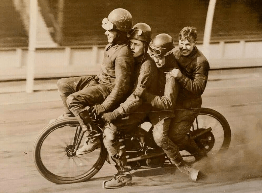 Time to open another box of motor cycle photos; melanges 1 and 2 are overflowing. They’re both in rough (and I do mean rough) chronological order but there are so many pics awaiting publication that this time I’m simply going to chuck them onto the page, although I’ll continue to add old American and Great War images to their sections in Melange 1; World War 2 has its own gallery. Where I have relevant background I’ll add a caption but for the most part this will be just another chance to take a look at riders and their bikes from our shared past. Enjoy.