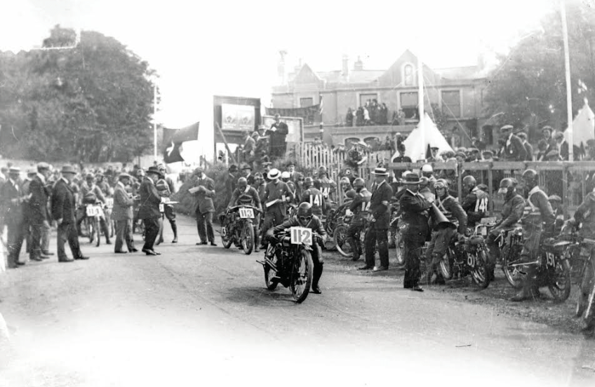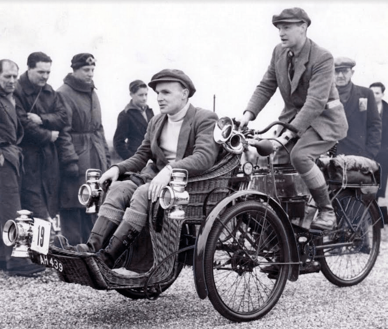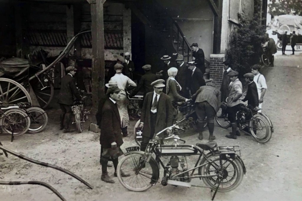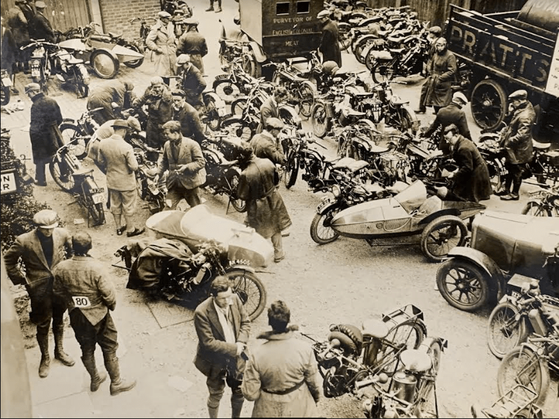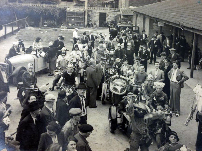 “The start of the London to Gloucester Trial at the Bridge House Hotel.”