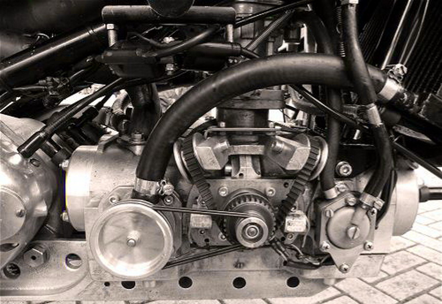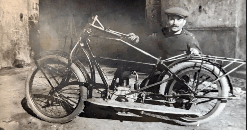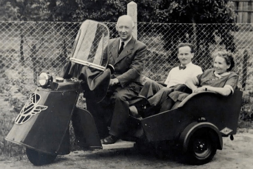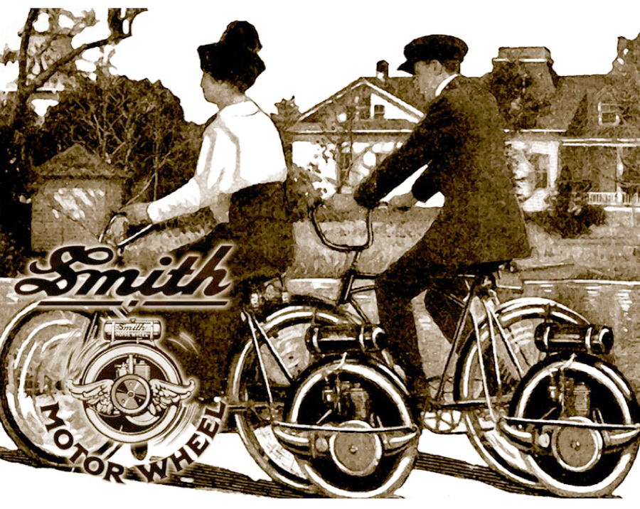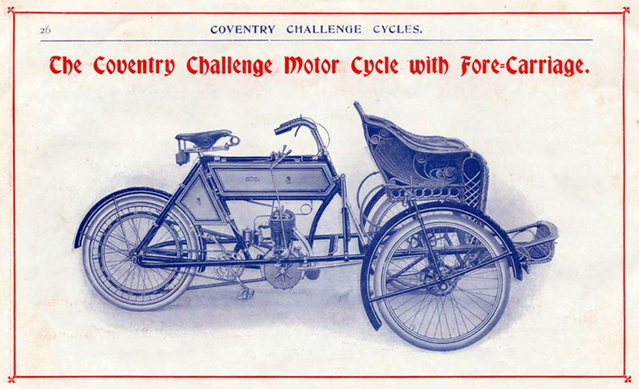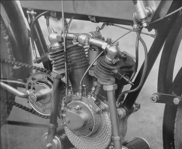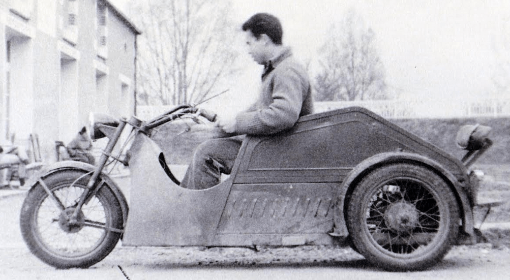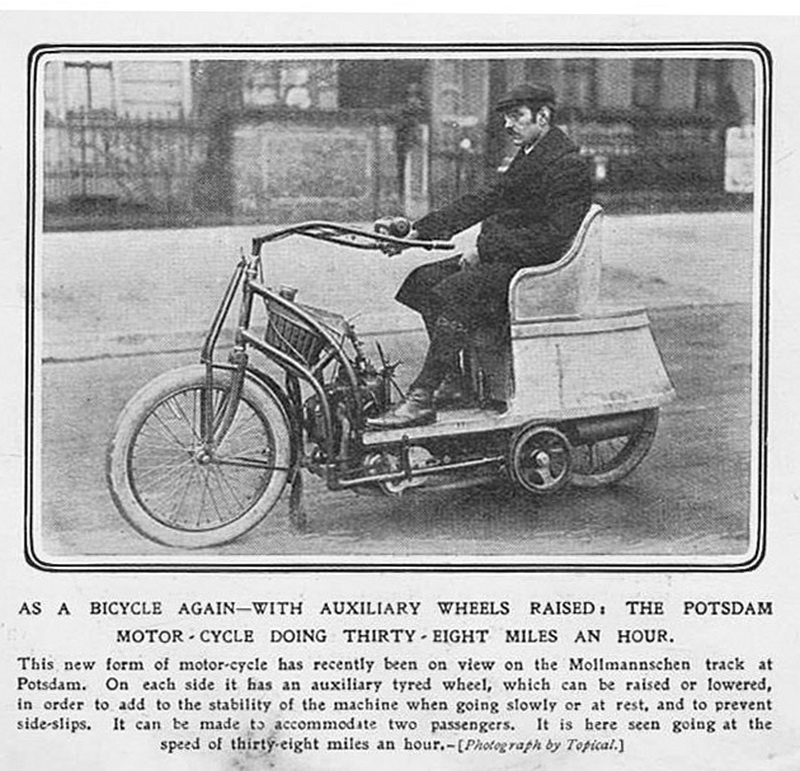 Killinger & Freud, complete with a 600cc two-stroke triple in the front wheel.