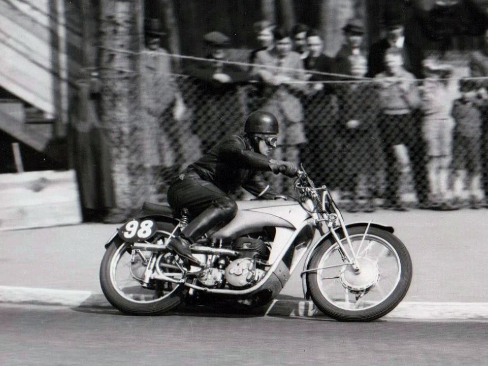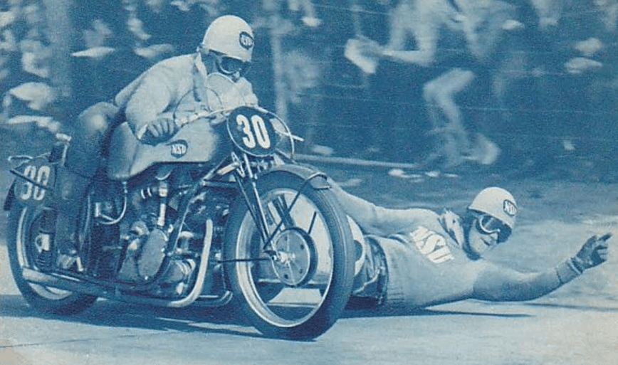 Freddie Frith aboard what looks to be a Mk8 KTT in its natural environment.