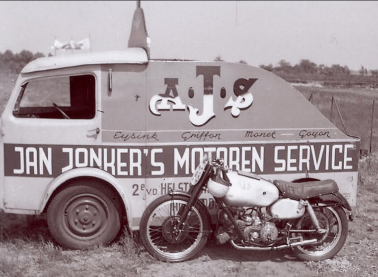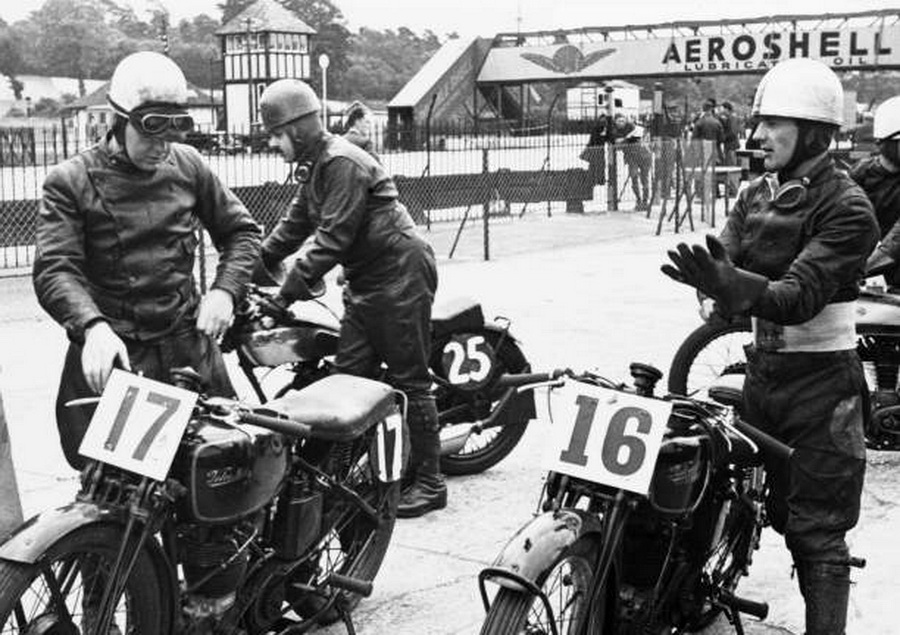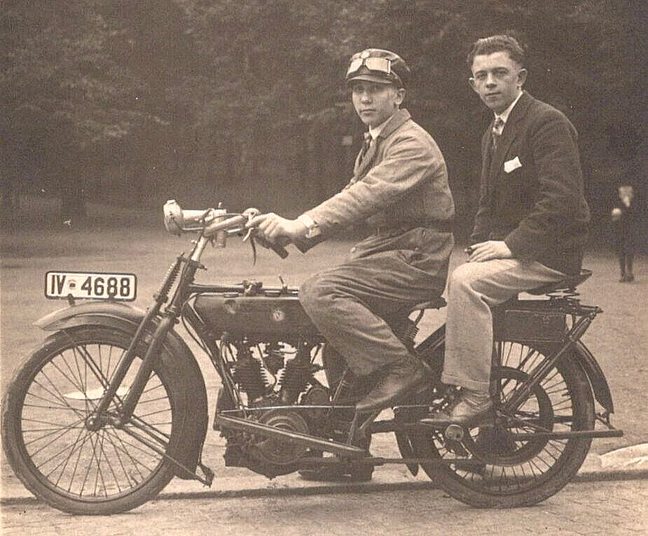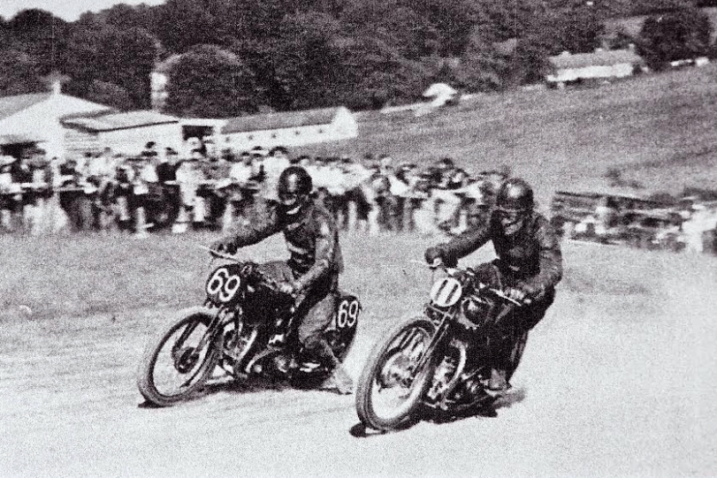 Hans Herkuleijns ‘The Dutch Devil’ from Amsterdam on his Excelsior Big Valve racer; (right) Brinkhof on his Cyclone.