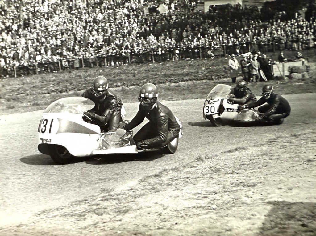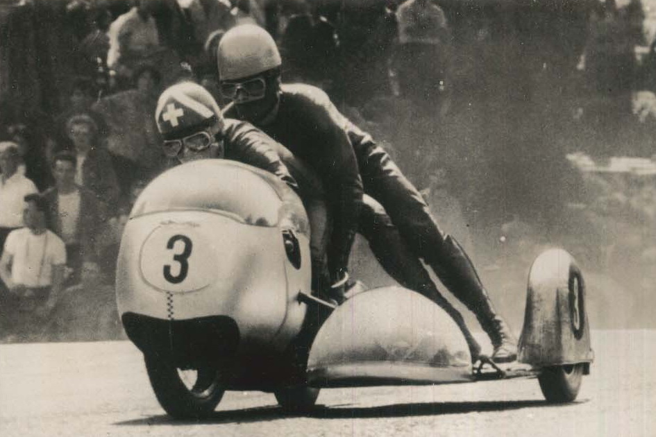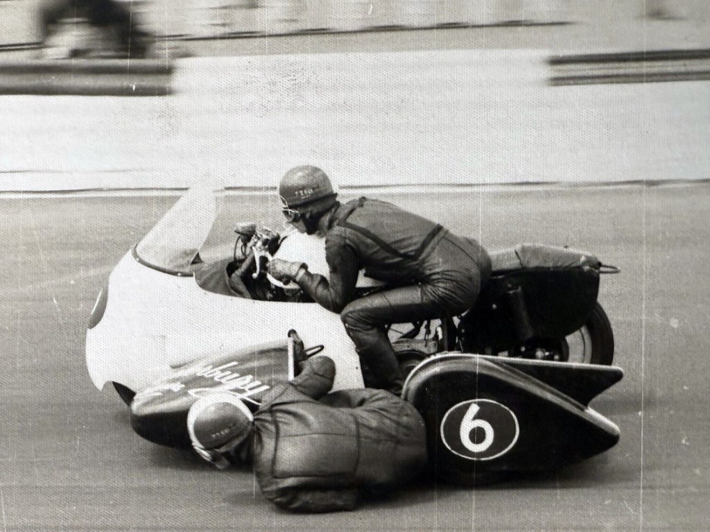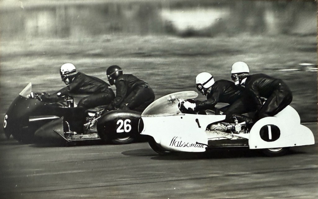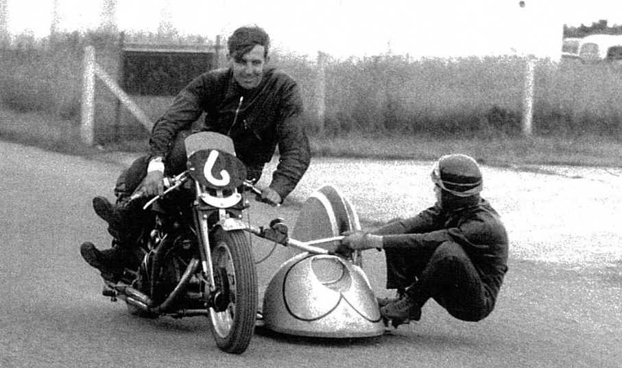 Helmut Fath, pictured with Graham Milton, won the sidecar world championship in 1960 and 1968.